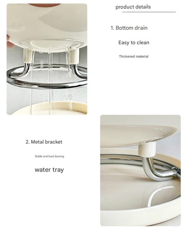 • Integrated Drainage System: The base of the bowl features drainage holes, allowing you to wash fruits directly in the bowl. Excess water collects in the separate detachable base tray, keeping your countertops dry and your fruit well-ventilated.